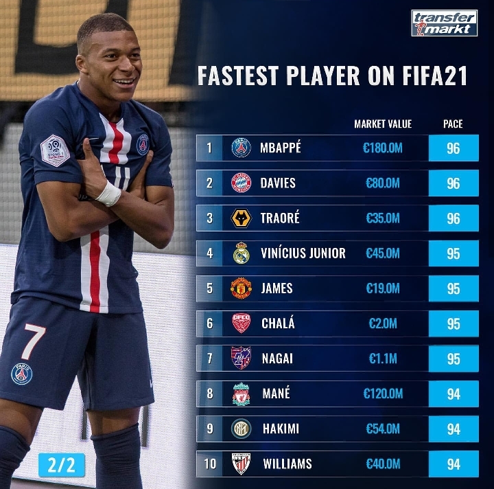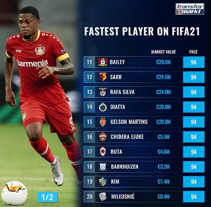 ['한국 선수 포함' 피파 21 스피드 순위 TOP 20]