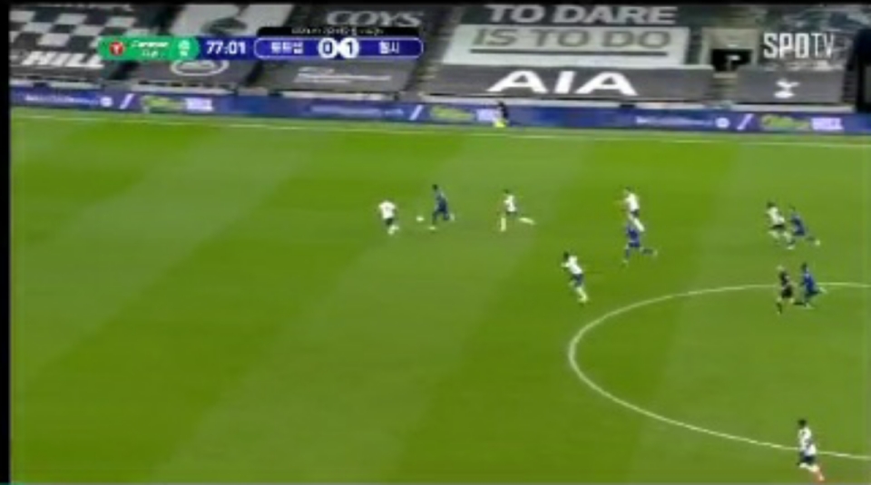 다행히 오도이가 날려서 실점 위기 벗어난 토트넘
