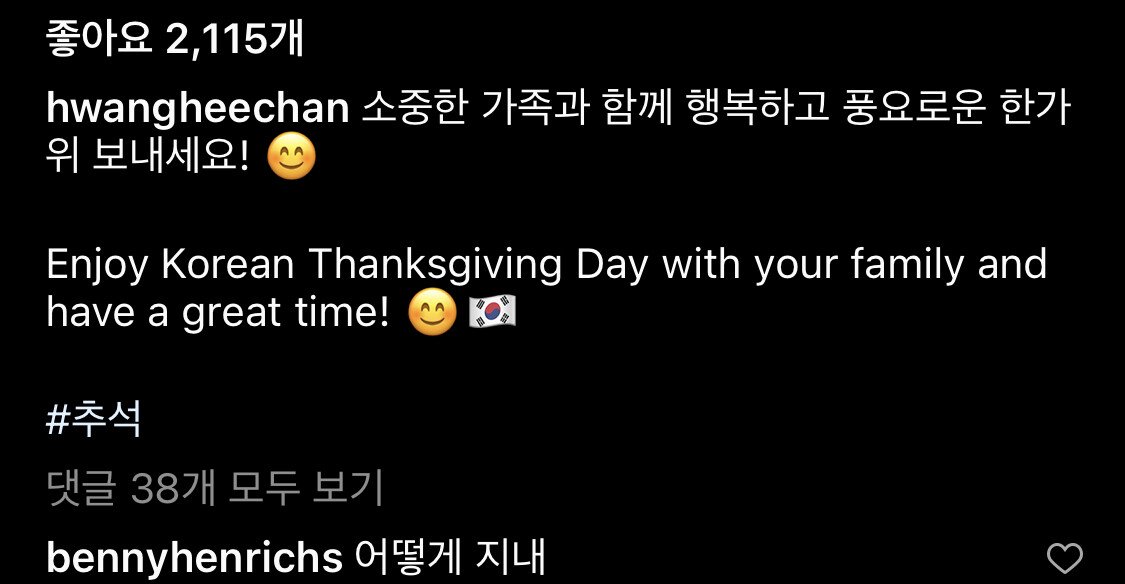 인스타에 추석 맞이 게시글을 올린 황희찬, 그런데 댓글에 "어떻게 지내"라고 한국말로 인사하는 핸리치ㅋㅋㅋ