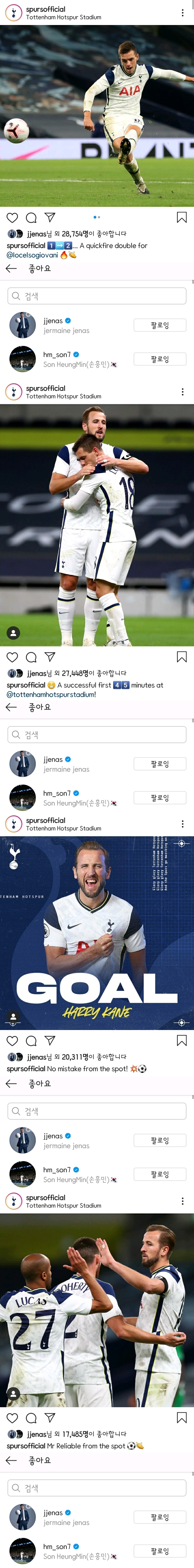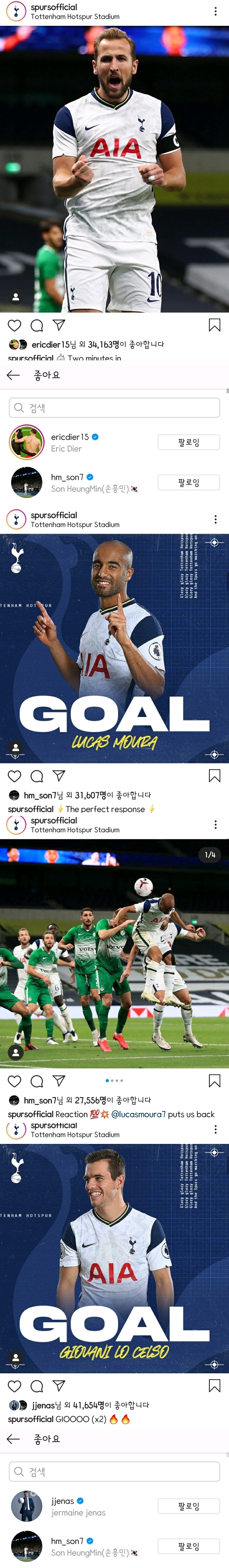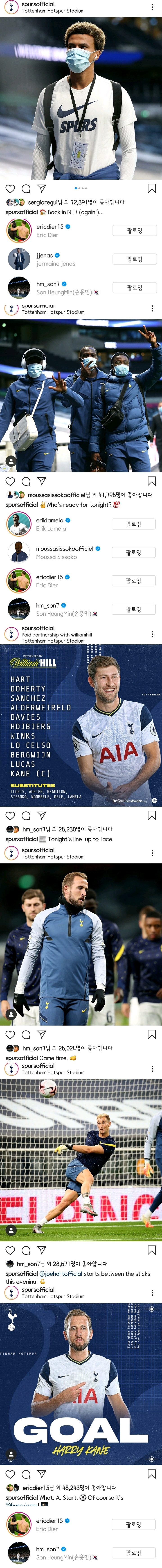 경기 시작 직전부터 현재까지 토트넘&동료들 모든 게시글 좋아요