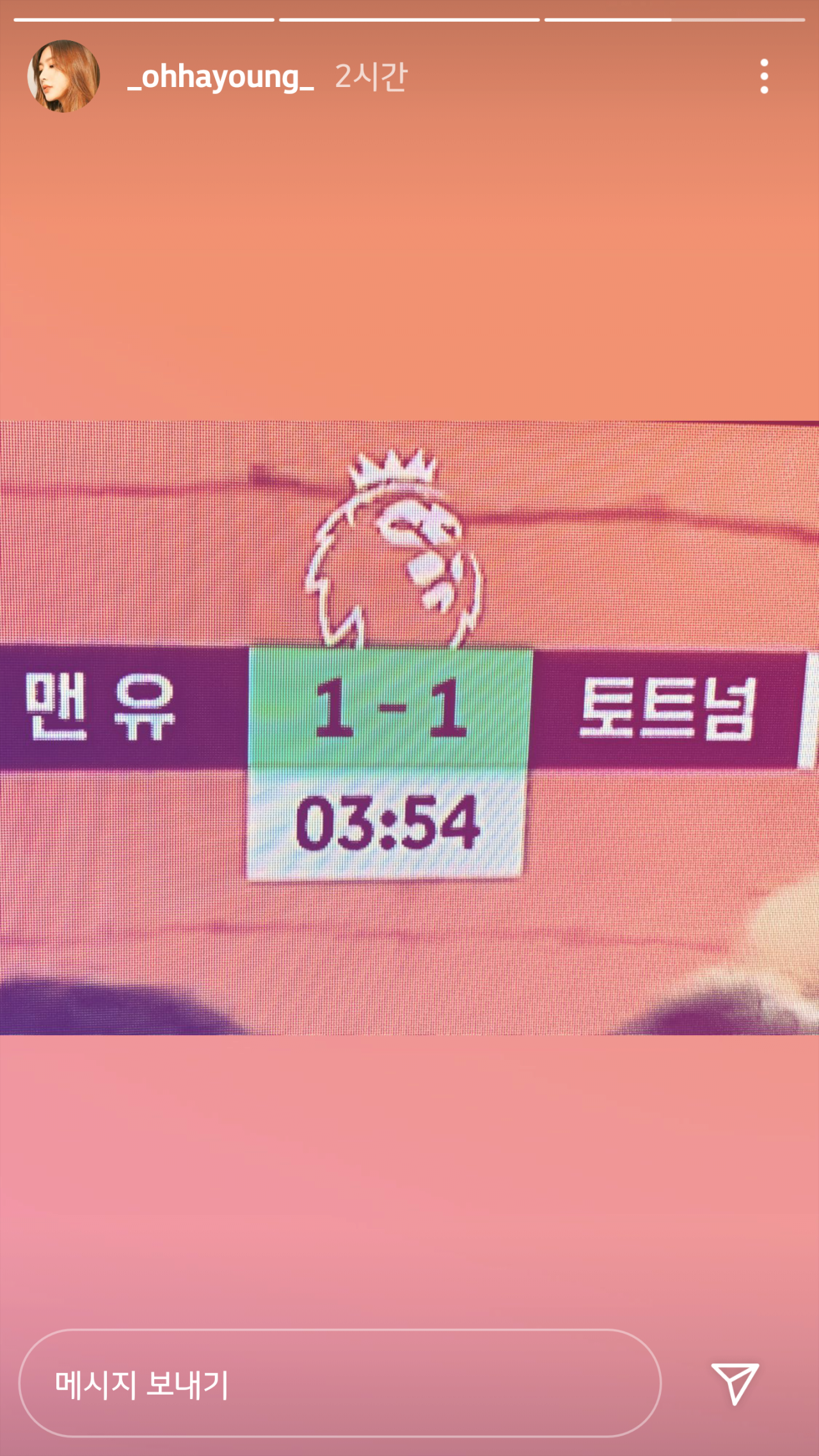 맨유 vs 토트넘 경기 실시간으로 보던 오하영은 위 사진을 SNS에 올린 이후 사라졌다고.. (경기 보다가 멘탈이 터진 듯)