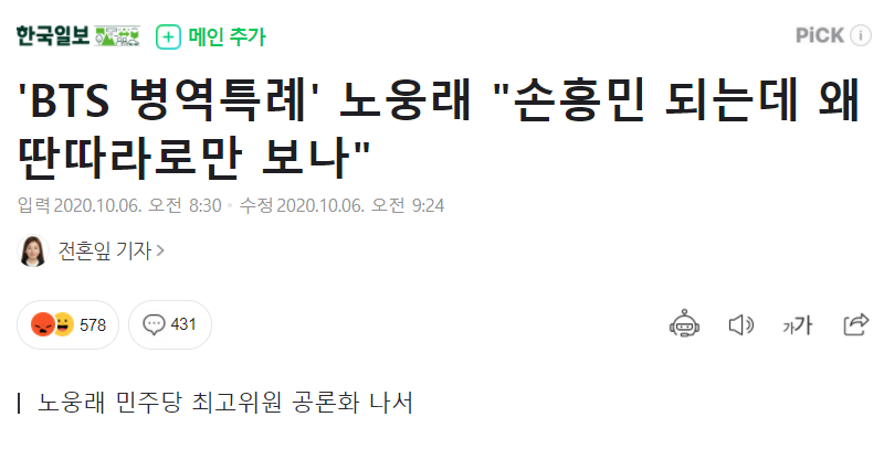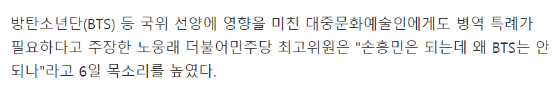 [BTS 병역 특례 논란에 소환된 '손흥민']