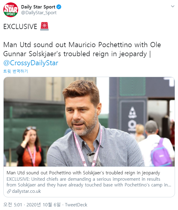 출처 : https://twitter.com/DailyStar_Sport/status/1313207581851242496