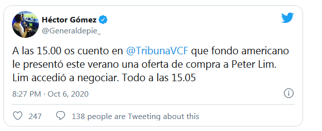 [[속보] 발렌시아 구단주 피터림, 발렌시아 매각 협상 중]