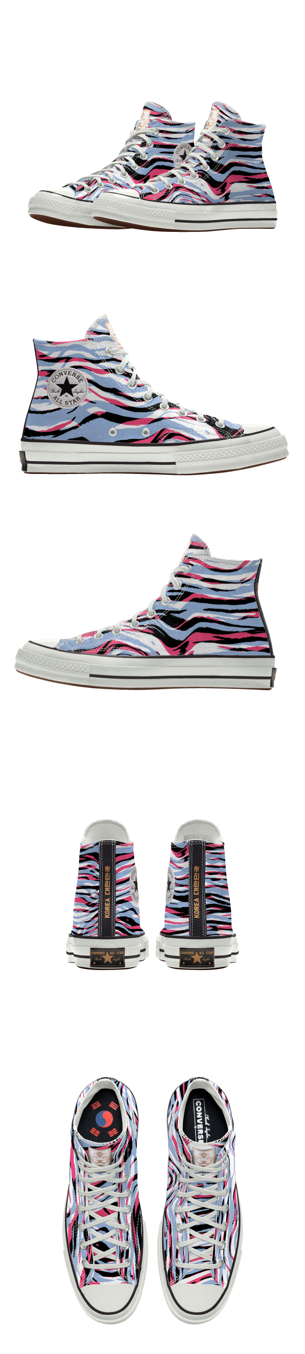 컨버스는 나이키가 제작하고 있는 축구 대표팀 유니폼에서 영감받은 나이키 바이 유(Nike By You) '척 70'을 출시했습니다. 대한민국 축구대표팀도 포함됐는데요. 총 3가지 디자인으로 출시됐습니다. 나이키 바이 유(Nike By You)는 신발의 디자인을 내 입맛에 맞게 커스텀할 수 있는 서비스입니다.
