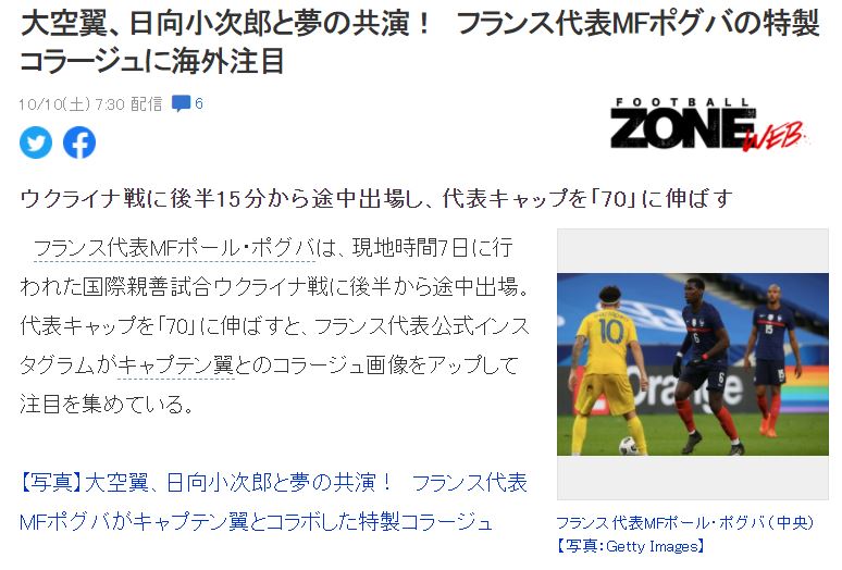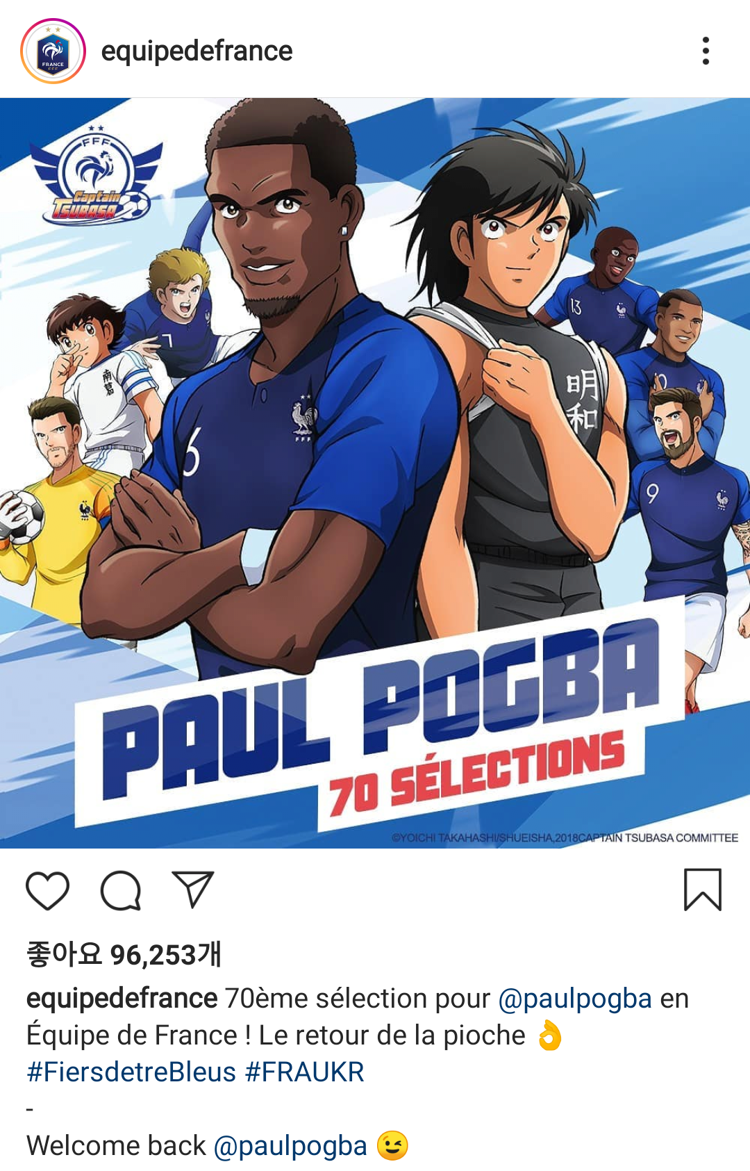 프랑스축구협회는 포그바의 70경기 출전을 기념해 세계적으로 인기있는 만화 캡틴 츠바사와의 콜라보를 개재했다.