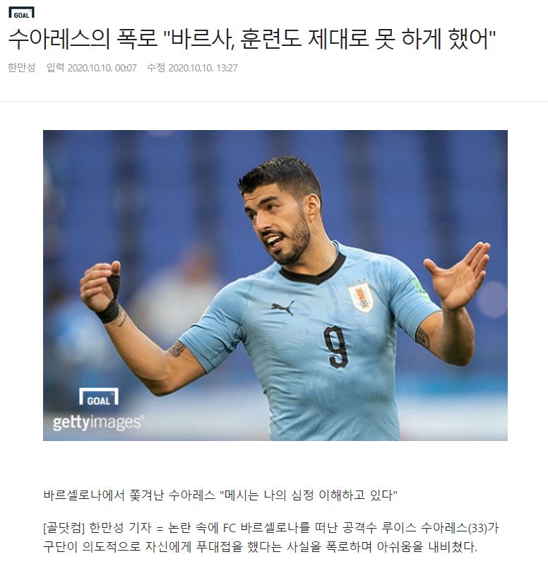 [수아레스의 폭로 "바르사, 훈련도 제대로 못 하게 했어"]
