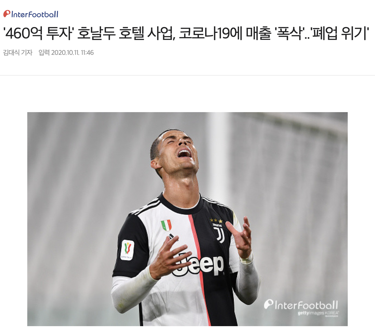 [거액 투자한 호날두의 호텔 사업 '폐업 위기']