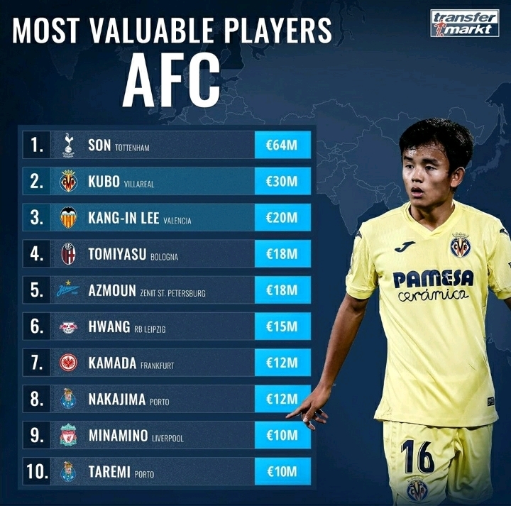 쿠보 엄청나네요ㄷㄷ 1위는 역시 손흥민!!! TOP 10 안에 한국인이 3명이나 있다니!!