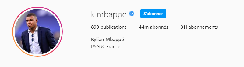 프랑스에서 가장 높은 인스타그램 영향력을 가진 전체인물 1위 킬리안 음바페