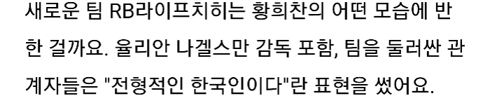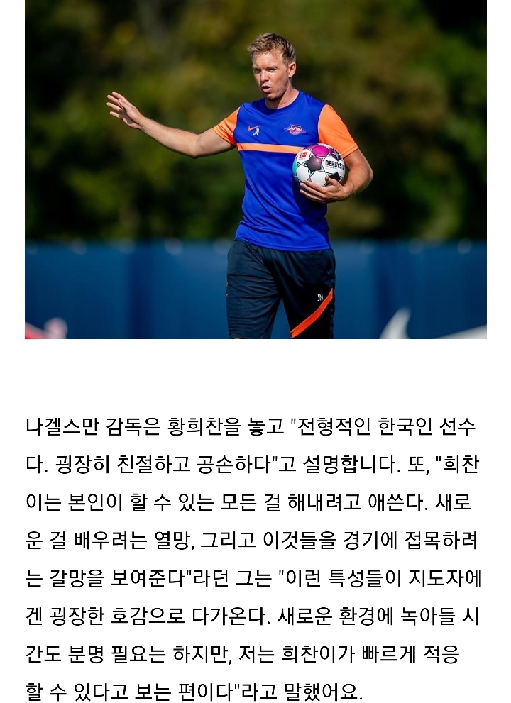 | 니겔스만 감독 "황희찬은 전형적인 한국인 선수" | |