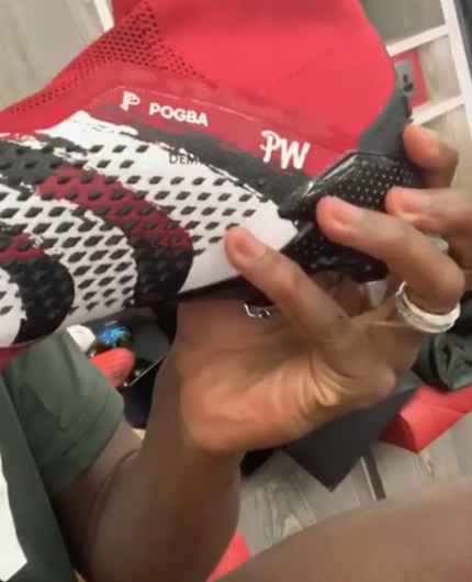 최근 프리미어 리그 경기에서 포그바의 새로운 축구화가 포착되었습니다.