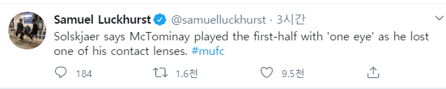 솔샤르 : 맥토미니는 전반전 렌즈하나빠져서 그대로경기했음