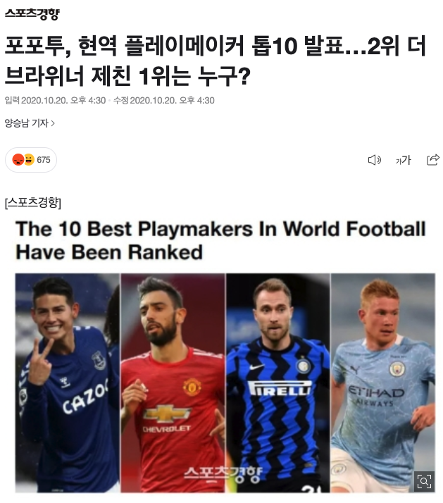 [데 브라위너를 제친, 현역 플레이메이커 1위는 누구?]