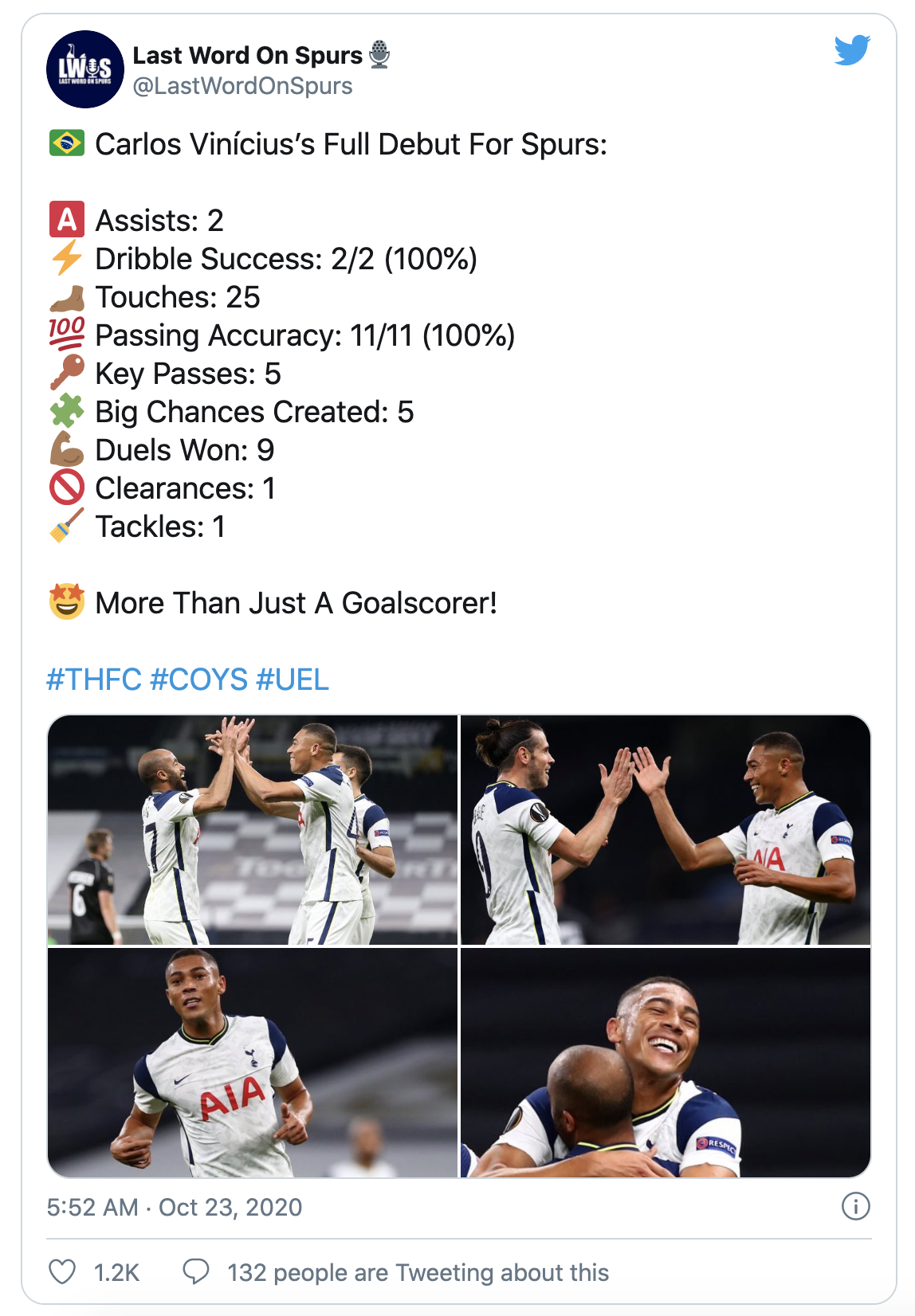 출처 : https://twitter.com/LastWordOnSpurs/status/1319381087613820928