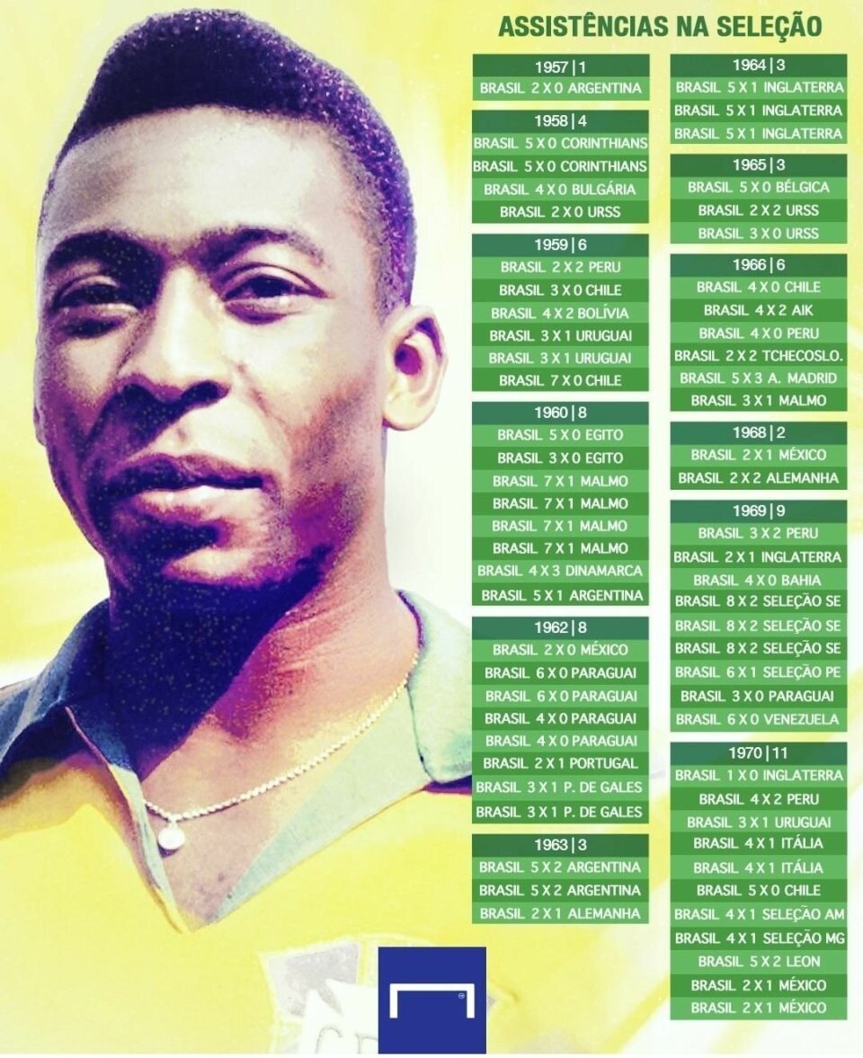 브라질 골닷컴 기자인 Tomas Rosolino가 몇달동안 조사한 끝에 펠레의 A매치 통산 어시스트 갯수를 파악해냄.