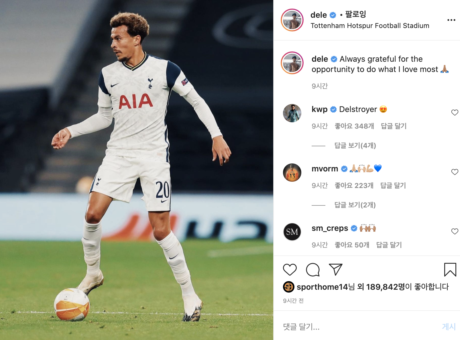 ['성숙해진 듯한' 델레 알리의 인스타 업뎃]