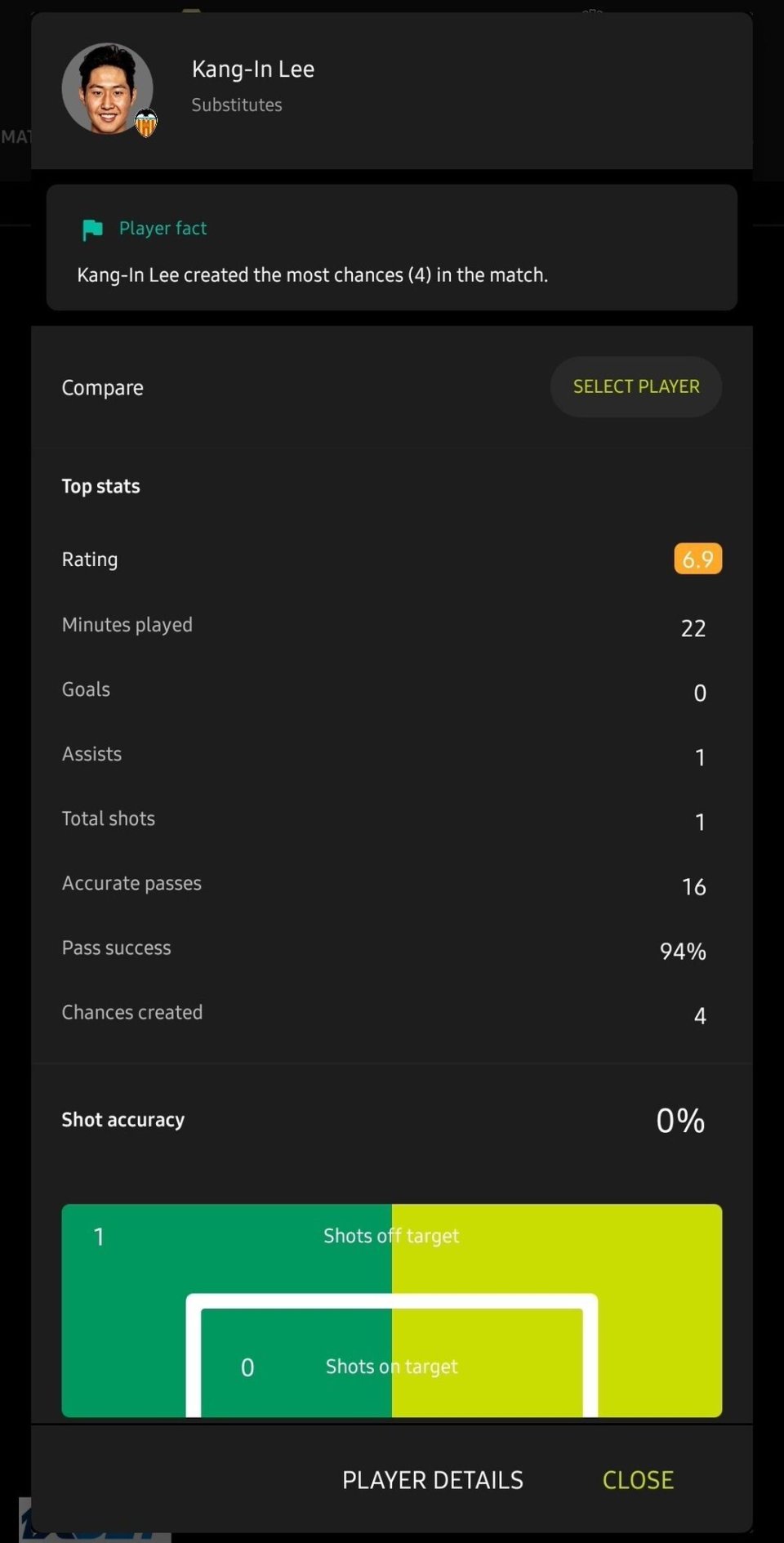 교체로 나와서 패스 성공률 94%, 기회 창출 4회