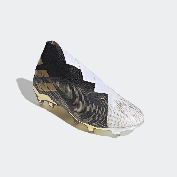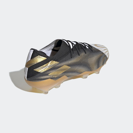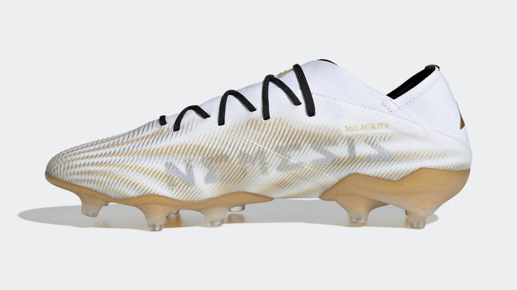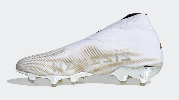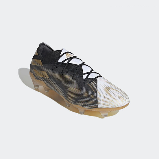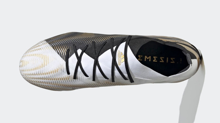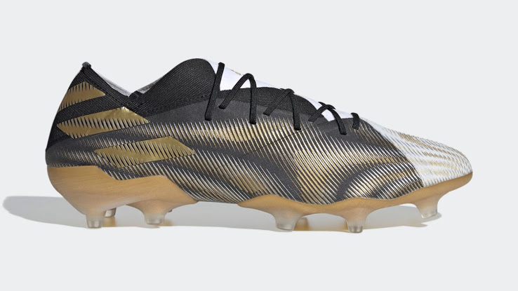 이강인이 처음으로 선보인 아디다스의 새로운 네메시스 19.1은 11월 출시될 예정인 'Atmosperic Pack'에 포함되어 출시될 예정인데요. Black / White / Gold / Silver 컬러의 조합과 고급스러운 디자인이 눈에 띄는 축구화입니다.