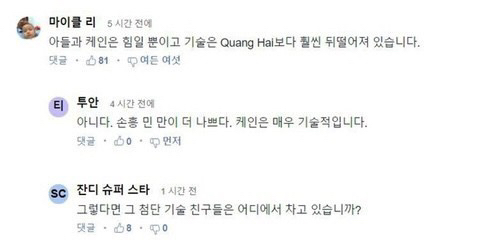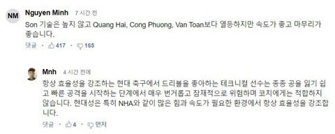와.... 손흥민이 이정도인데 응우옌 꽝하이 너무 기대되네 ㄷㄷㄷㄷㄷ