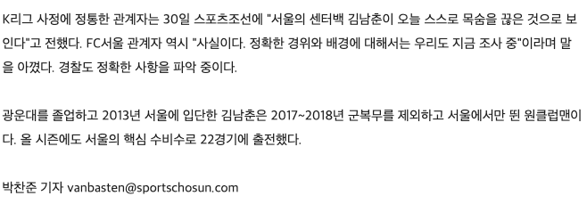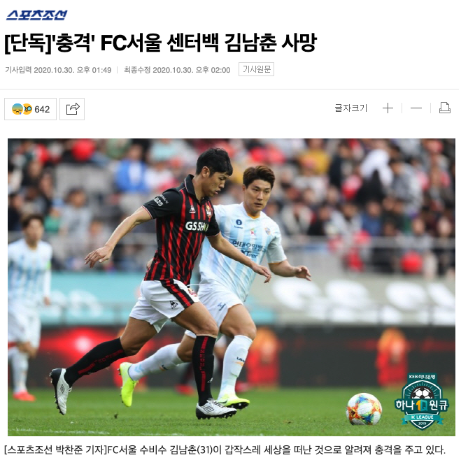 | 충격.. FC 서울 센터백 김남춘 사망 | |