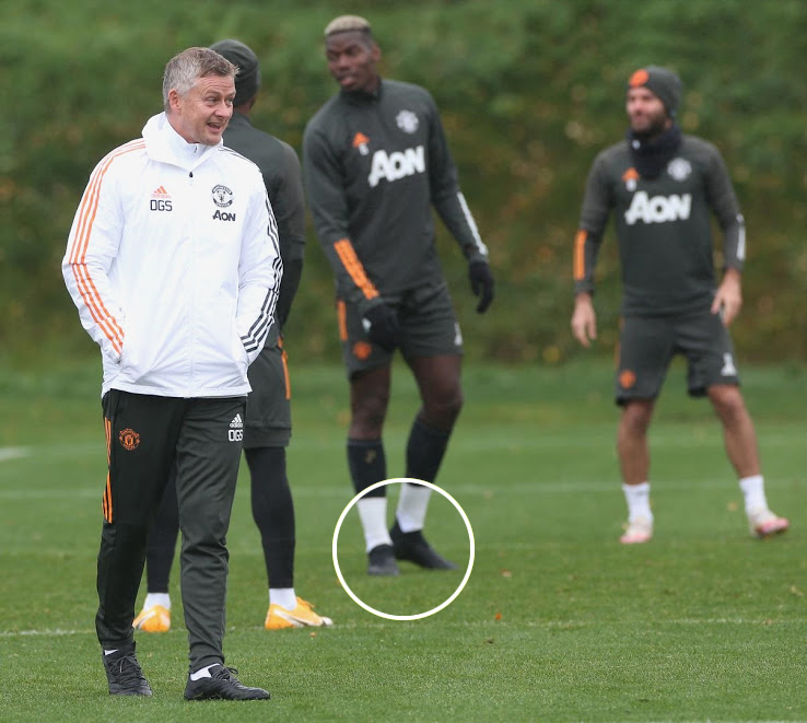 맨체스터 유나이티드의 훈련에서 포그바가 신은 특별한 축구화가 포착되었습니다.