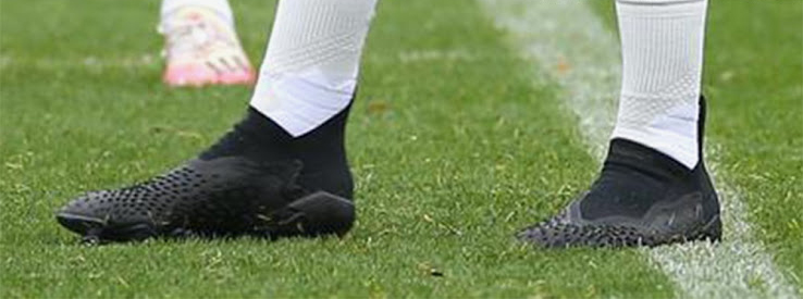 포그바가 테스트 중인 블랙아웃 버전의 프레데터 프릭+에서 가장 크게 보이는 변화는 발목 칼라의 모습인데요.