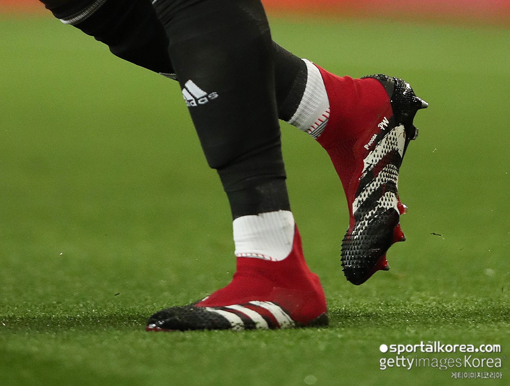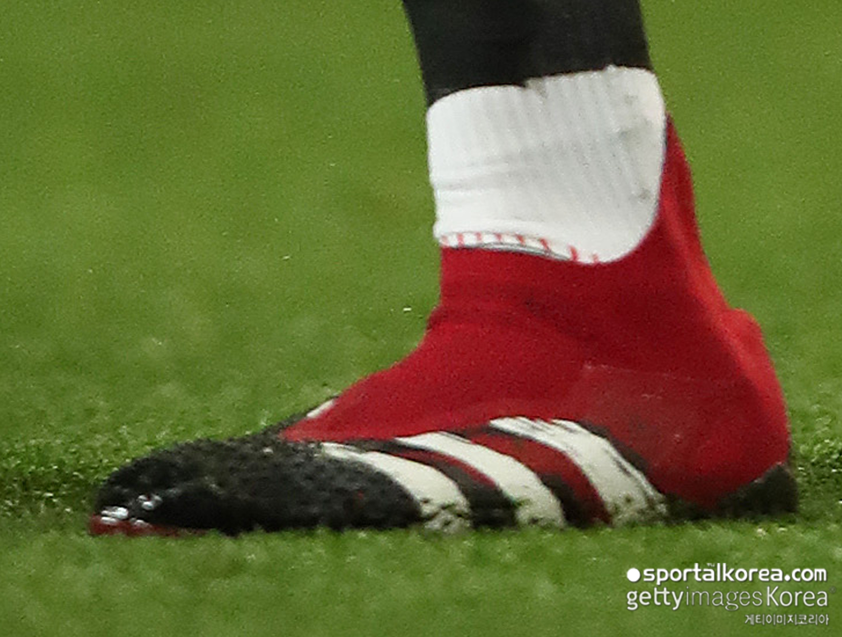 포그바가 기존에 착용했던 프레데터 20+는 발목 칼라가 둥그런 'U'자형으로 제작된 반면에, 이번에 새롭게 착용한 프레데터는 발목 칼라가 'V'자형으로 이루어진 모습입니다.