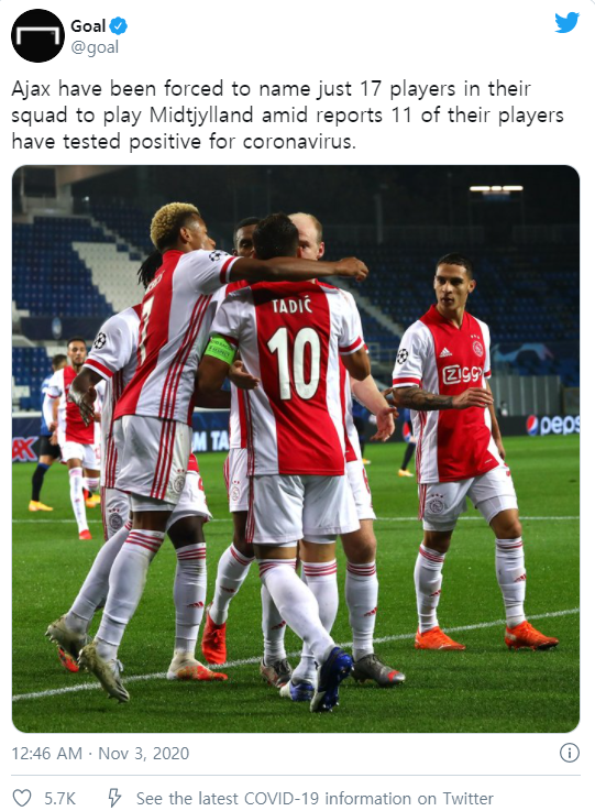 [아약스 11명 코로나 양성반응 판정ㄷㄷㄷㄷ]
