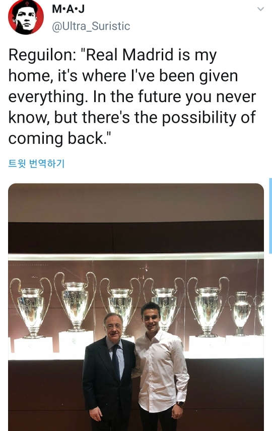레길론 "레알은 나의 집이고 내가 모든 것을 받은 곳이다. 미래를 알 수는 없지만 난 다시 레알로 돌아갈 수도 있다"
