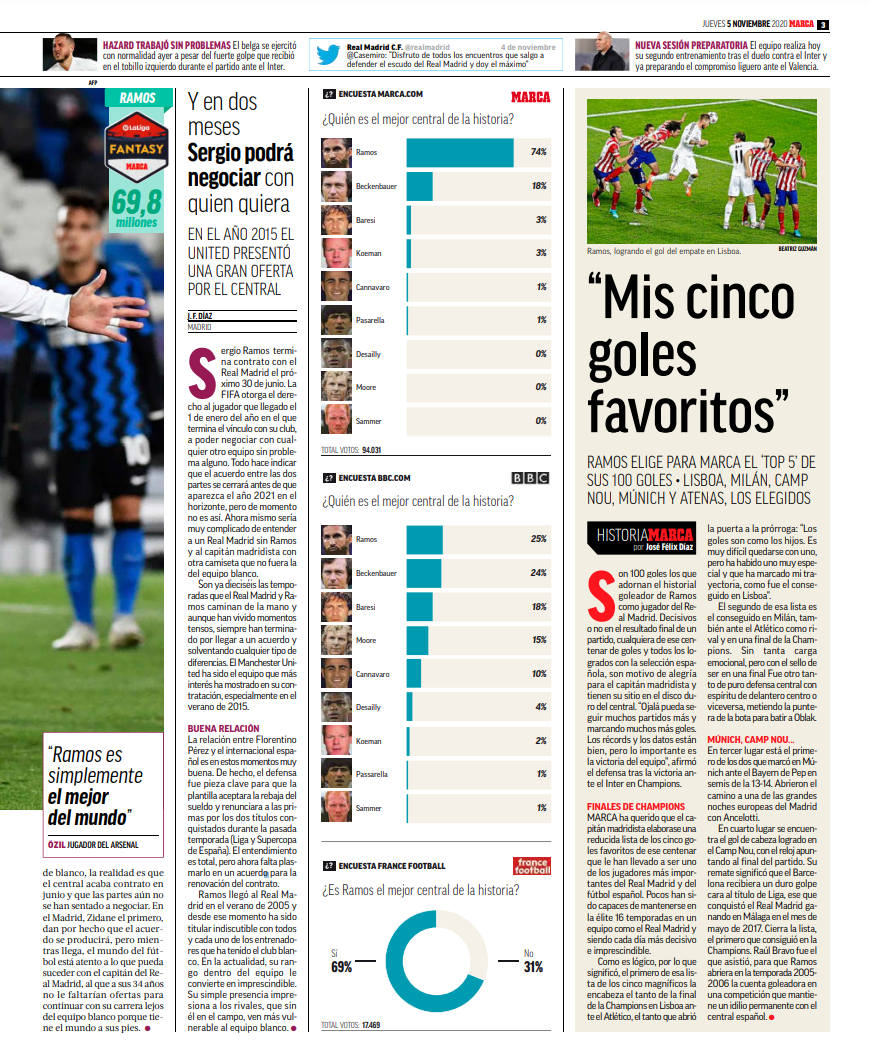 축구 역사상 최고의 센터백은 누구인가? (마르카 / 94,031명 투표)