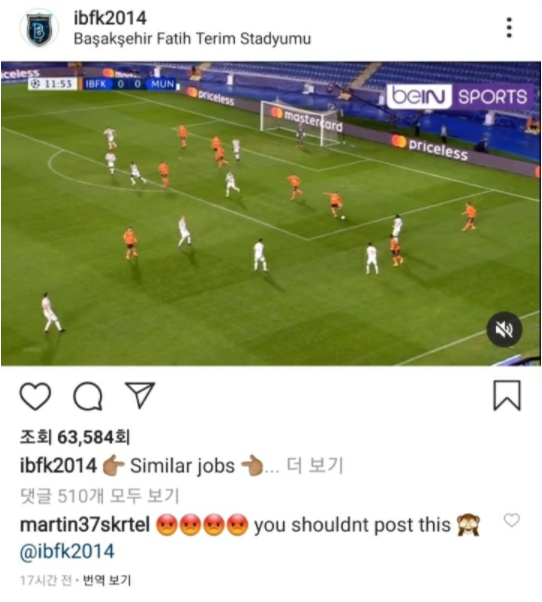[제라드를 조롱한 바삭셰히르 공식 인스타]