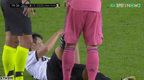 근육통으로 교체 요구하는 이강인ㅠㅠ.gif