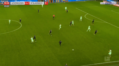 오늘 레버쿠젠vs묀헨 경기 푸스카스 후보급 골.gif