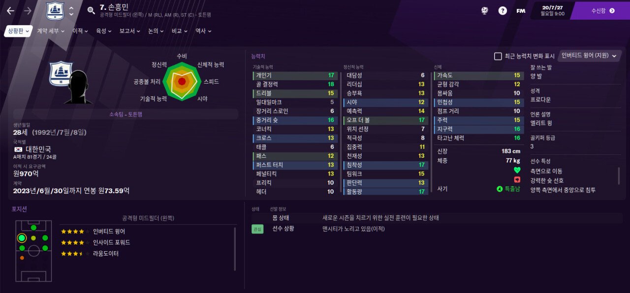 [FM20 VS FM21 손흥민 능력치 비교ㄷㄷㄷ]