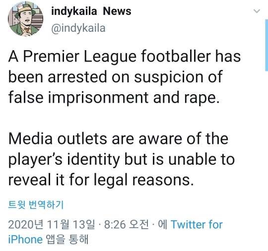 -스포츠 메일은 선수의 신분을 알고 있지만 법적인 이유로 밝힐 수 없었다.