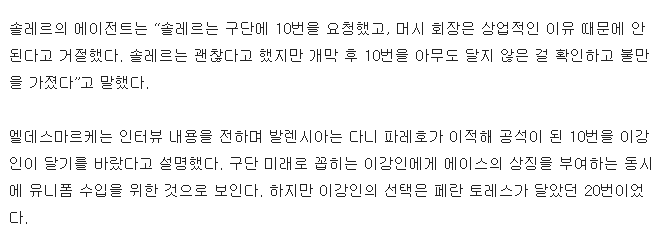 | 발렌시아 이강인은 10번을 거부하고 20번을 선택했다 | |