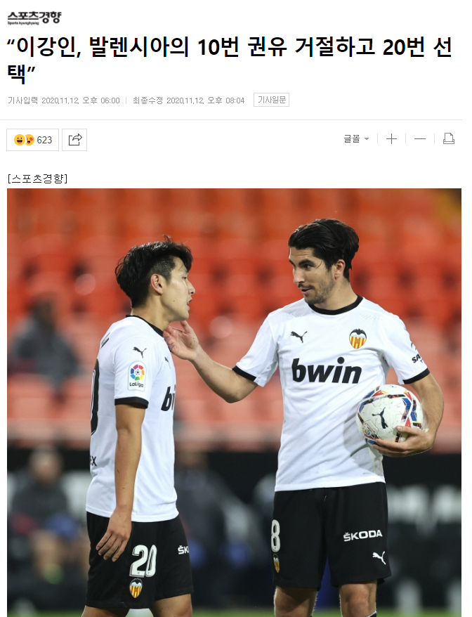 [발렌시아 이강인은 10번을 거부하고 20번을 선택했다]