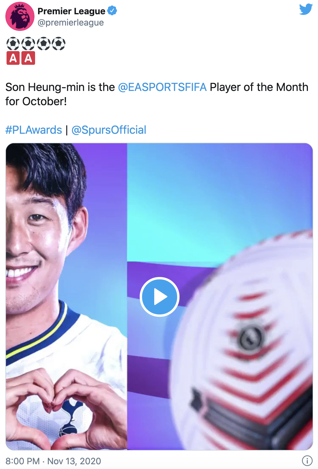 손흥민, 프리미어리그 10월! 이달의 선수상 수상 (feat. 영상 편지)