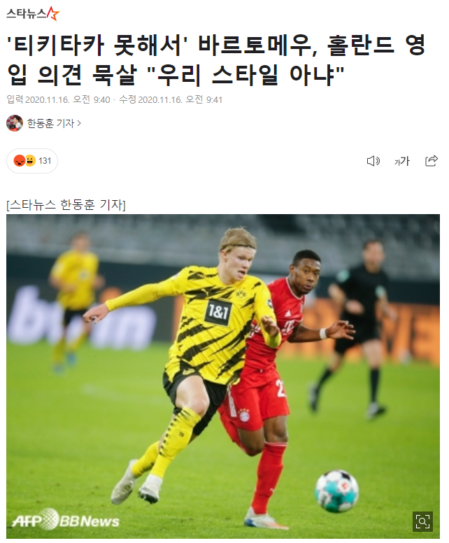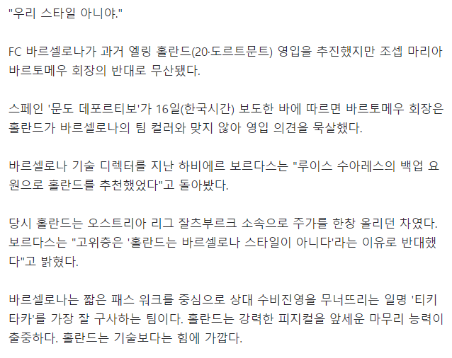 | '티키타카 못하는 홀란드' 우리 스타일 아냐.. 거절한 바르토메우 | |