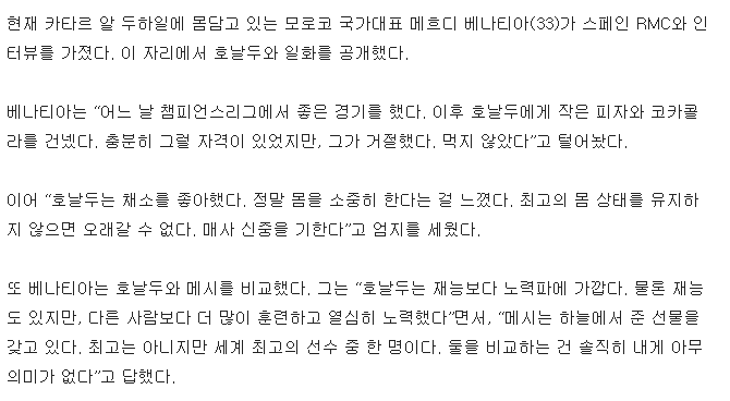 [전 동료가 말한 '호날두의 몸 관리 수준']