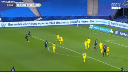 튀랑의 화려한 개인기 후 슈팅 - 굴절 - 파바르 그 각도에서 또다시 발리 깎아버리기
