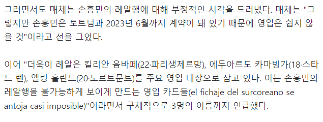 [손흥민 레알 이적 불가능하다 [스페인 언론]]
