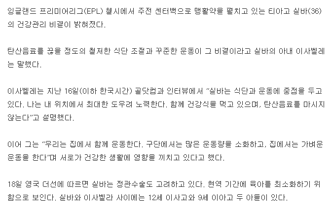 | 티아고 실바, 폼 유지 위해 '정관수술'까지 고려 중 | |