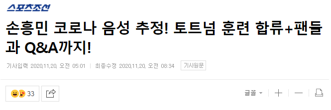 '코로나 음성?' 손흥민, 토트넘 훈련 합류!