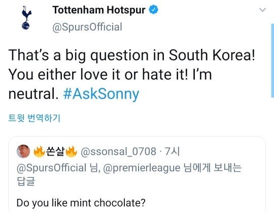(ㅋㅋㅋ민트 초코 민감한 사항이죠ㅋㅋㅋ 애매하게 잘 넘어간 쏘니ㅋㅋㅋㅋ)
