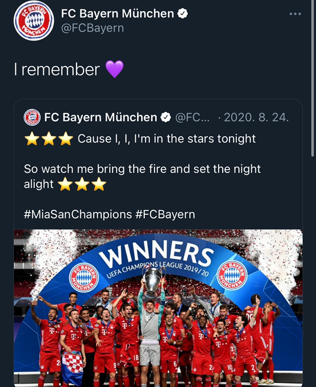 챔스 우승때는 다이너마이트 가사ㅋㅋㅋㅋㅋ 오늘은 보라색 하트ㅋㅋㅋ