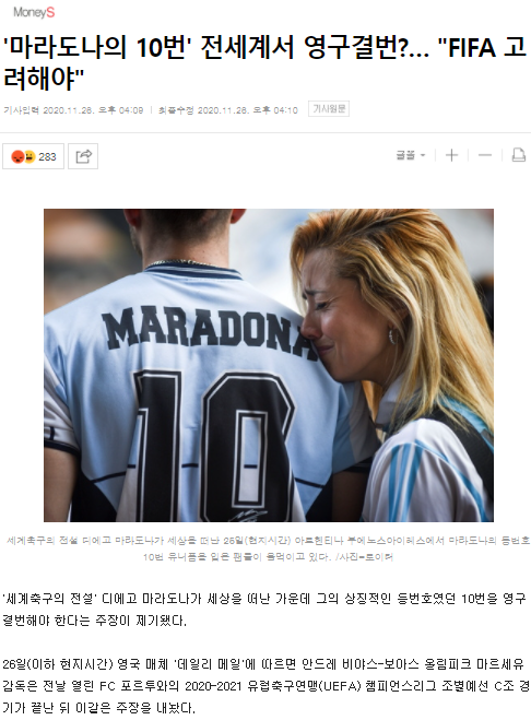 이어 "국제축구연맹(FIFA)이 등번호 10번을 모든 대회, 모든 팀에서 영구결번시켜야 한다고 생각한다"며 "그게 우리가 마라도나에게 보낼 수 있는 최고의 경의다. 그의 사망은 세계축구계에 있어 엄청난 손실이다"고 말했다.