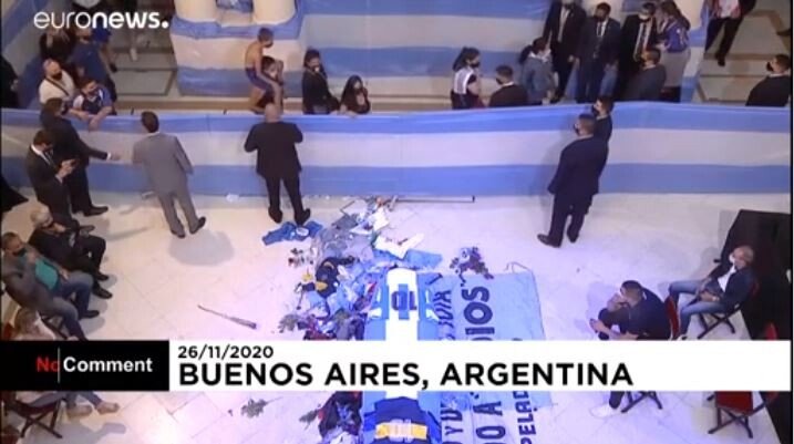 축구의 아이콘 디에고 마라도나의 시신이 담긴 관이 목요일 밤 아르헨티나 대통령 궁에 도착했다. AFP가 보도한 것처럼, 관이 엄중한 경호를 받는 상태로 구급차를 타고 건물에 도착했을 때 이미 수백 명의 사람들이 대통령 궁 앞에 줄을 서고 있었다. 수만 명의 사람들이 궁전 맞은 편의 마요 광장에서 밤을 보냈다.