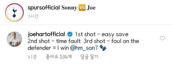 조 하트 : 첫 번째 슛 - 쉽게 막음, 두 번째 슛 - 시간 초과, 세 번째 슛 - 파울 = 내가 손흥민 발랐음